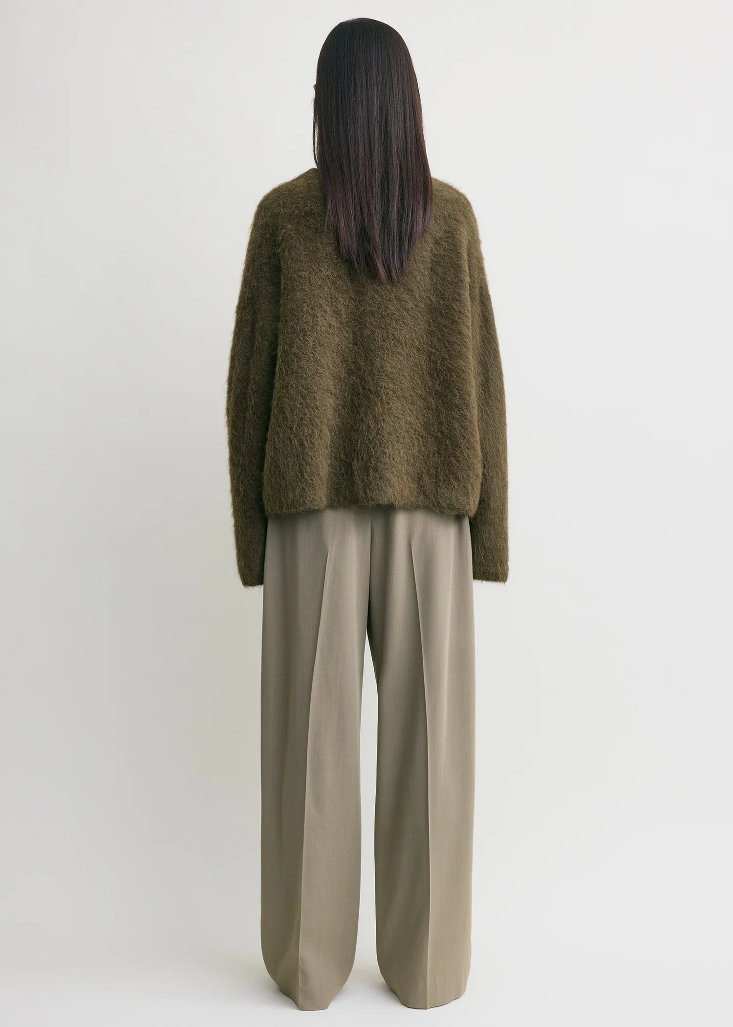 Suéter TOTEME exclusivo, tejido con hilos de mezcla de alpaca cepillada para una sensación acogedora. Tiene una silueta cuadrada impactante con proporciones oversize y mangas extralargas.