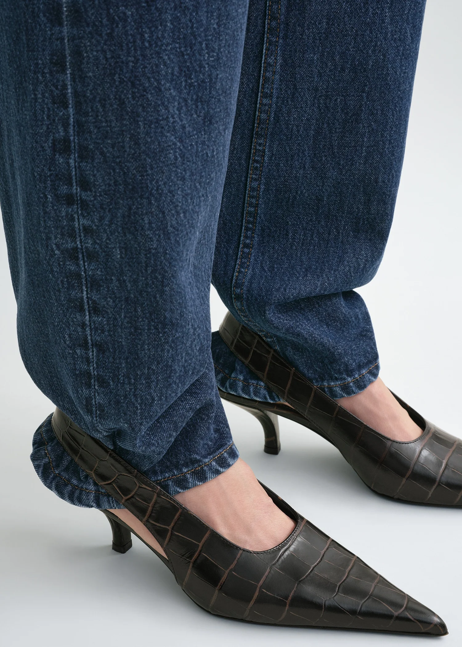 Zapatos clásicos tipo slingback con relieve de cocodrilo en marrón oscuro Toteme