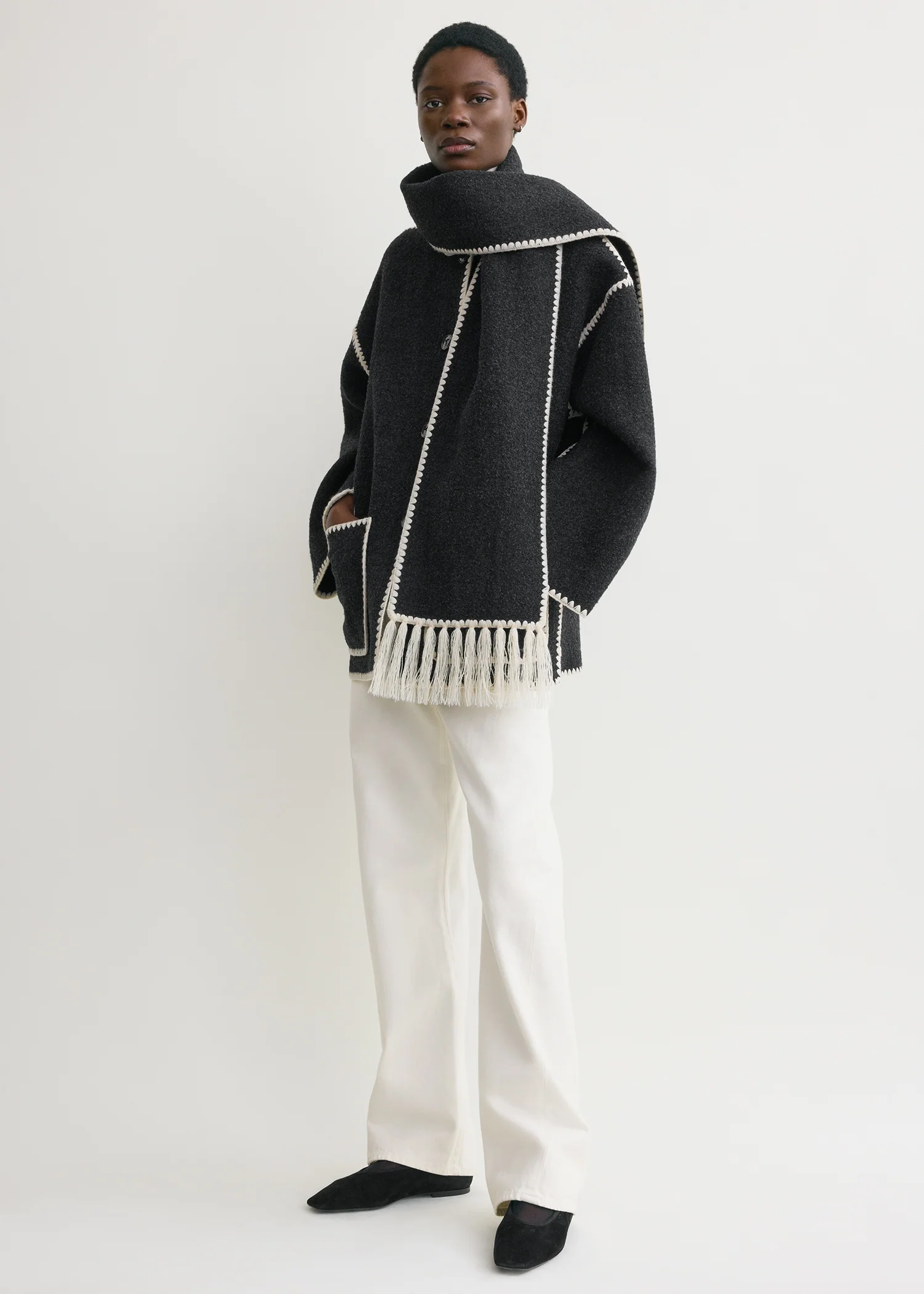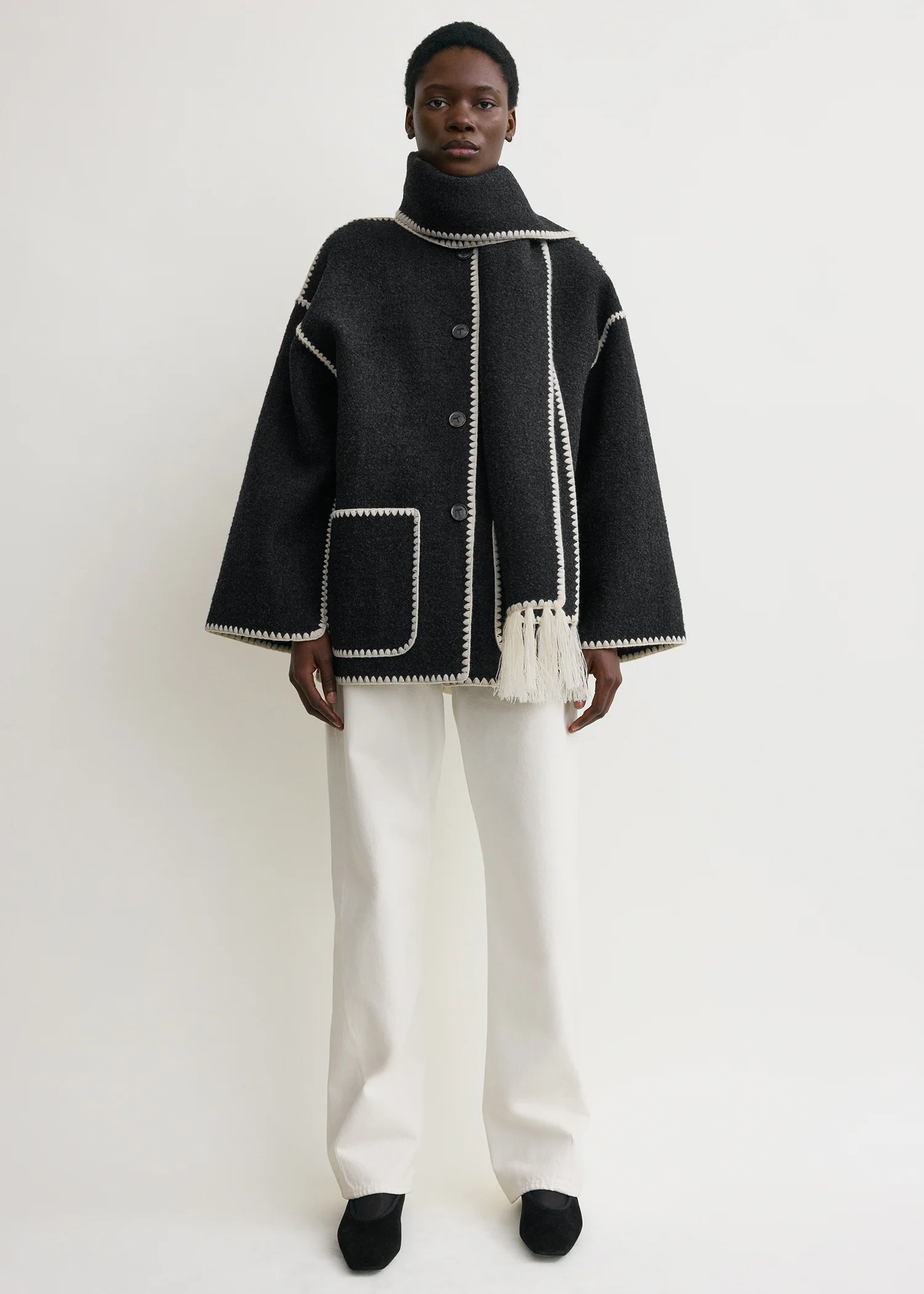 Chaqueta con bufanda bordada en gris oscuro jaspeado Toteme