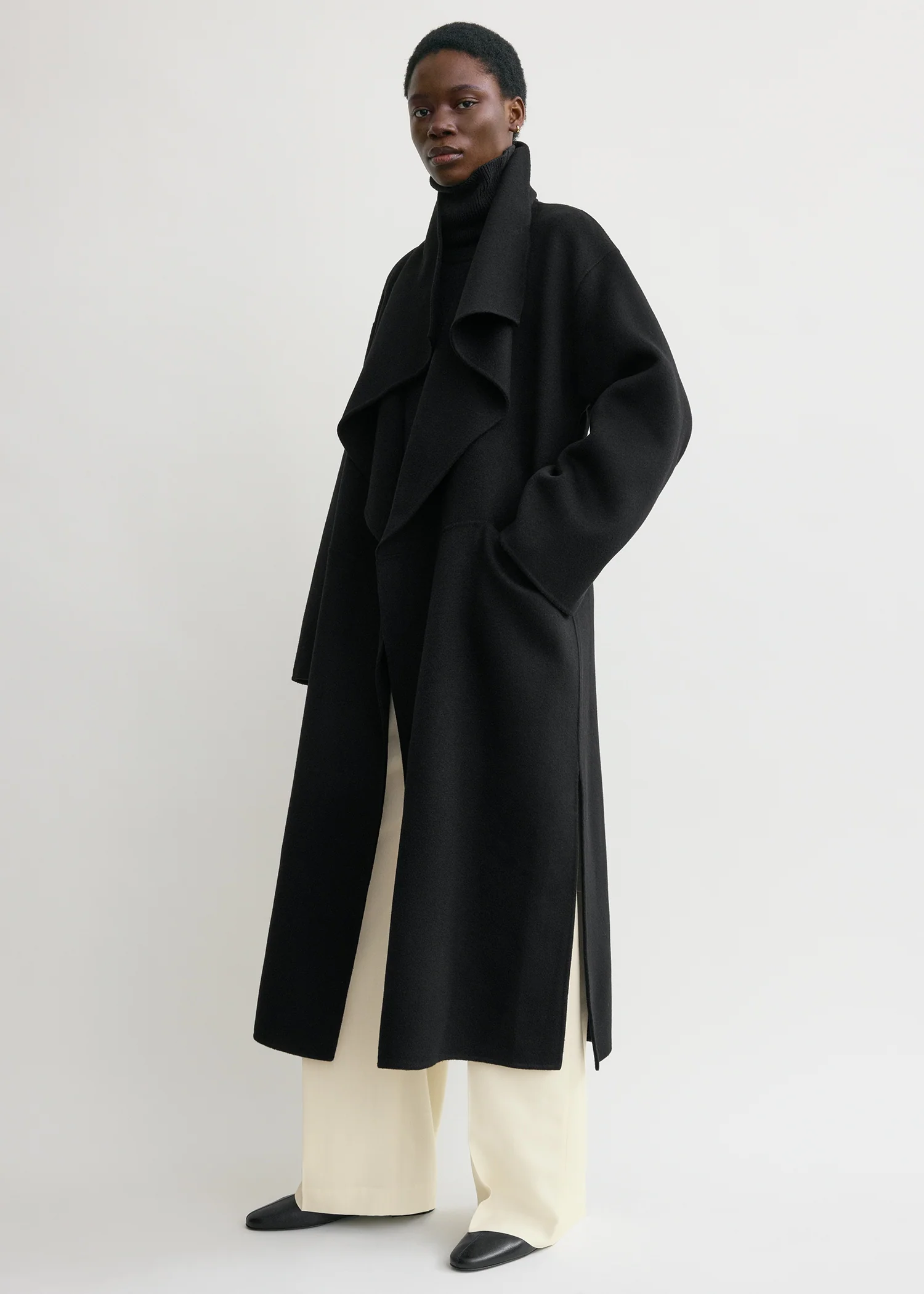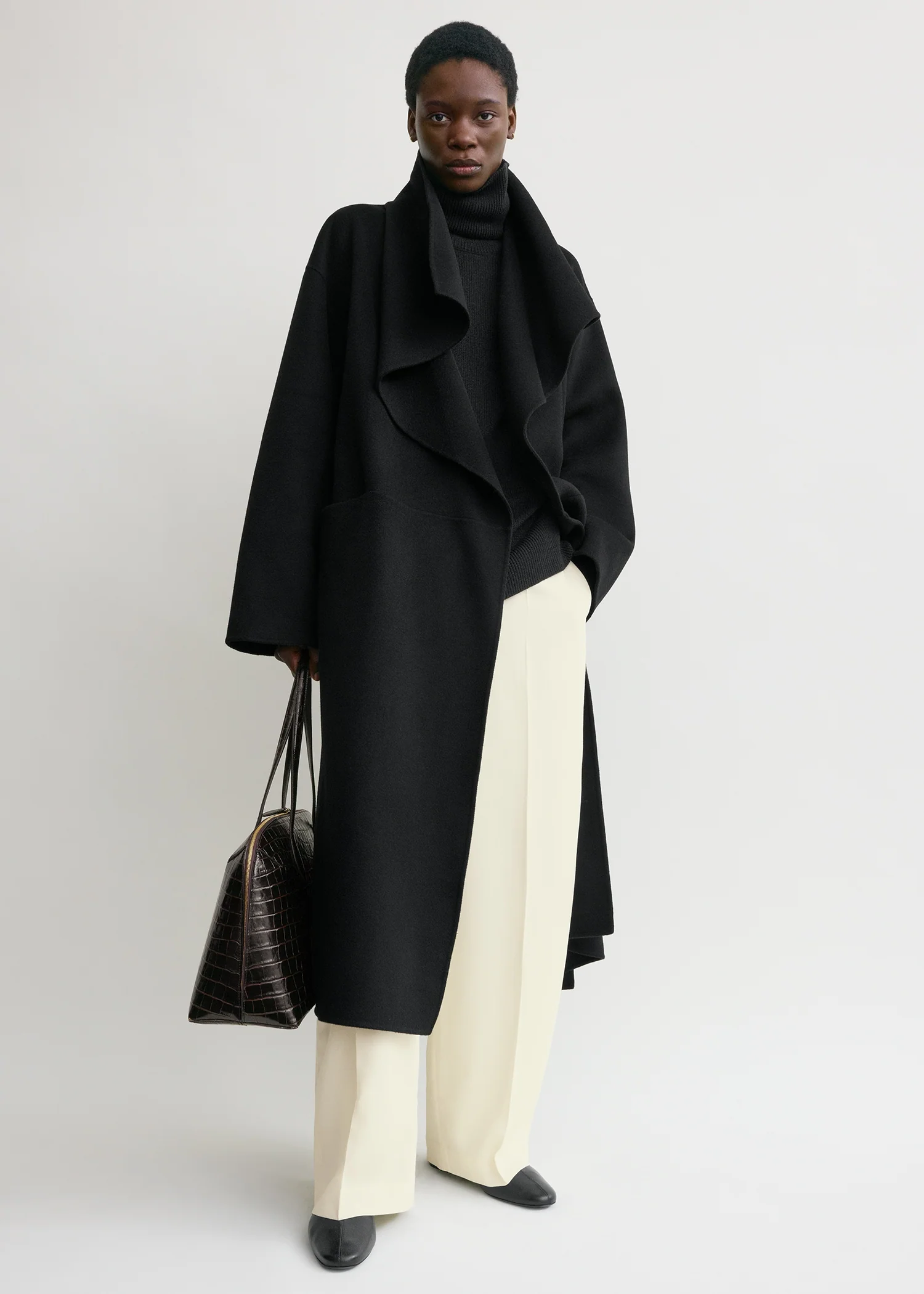 Abrigo Siganture Toteme exclusivo, actualizado con una silueta alargada y oversize y mangas largas, lo que resulta en una prenda de abrigo sofisticada. Está confeccionado en doublé, uno de nuestros tejidos de invierno favoritos, que se crea uniendo dos finas capas de lana y cachemira para lograr un acabado de doble cara con costuras impecables. Deja que la parte delantera abierta se adapte con elegancia a vestidos de noche y prendas de punto abrigadas
