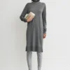 Vestido de punto fino con cuello alto ligeramente acanalado y puños extra largos Toteme