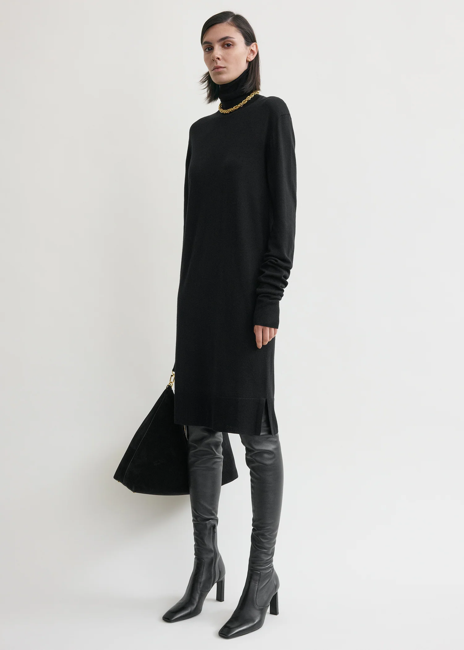Vestido de punto fino con cuello alto ligeramente acanalado y puños extra largos Toteme