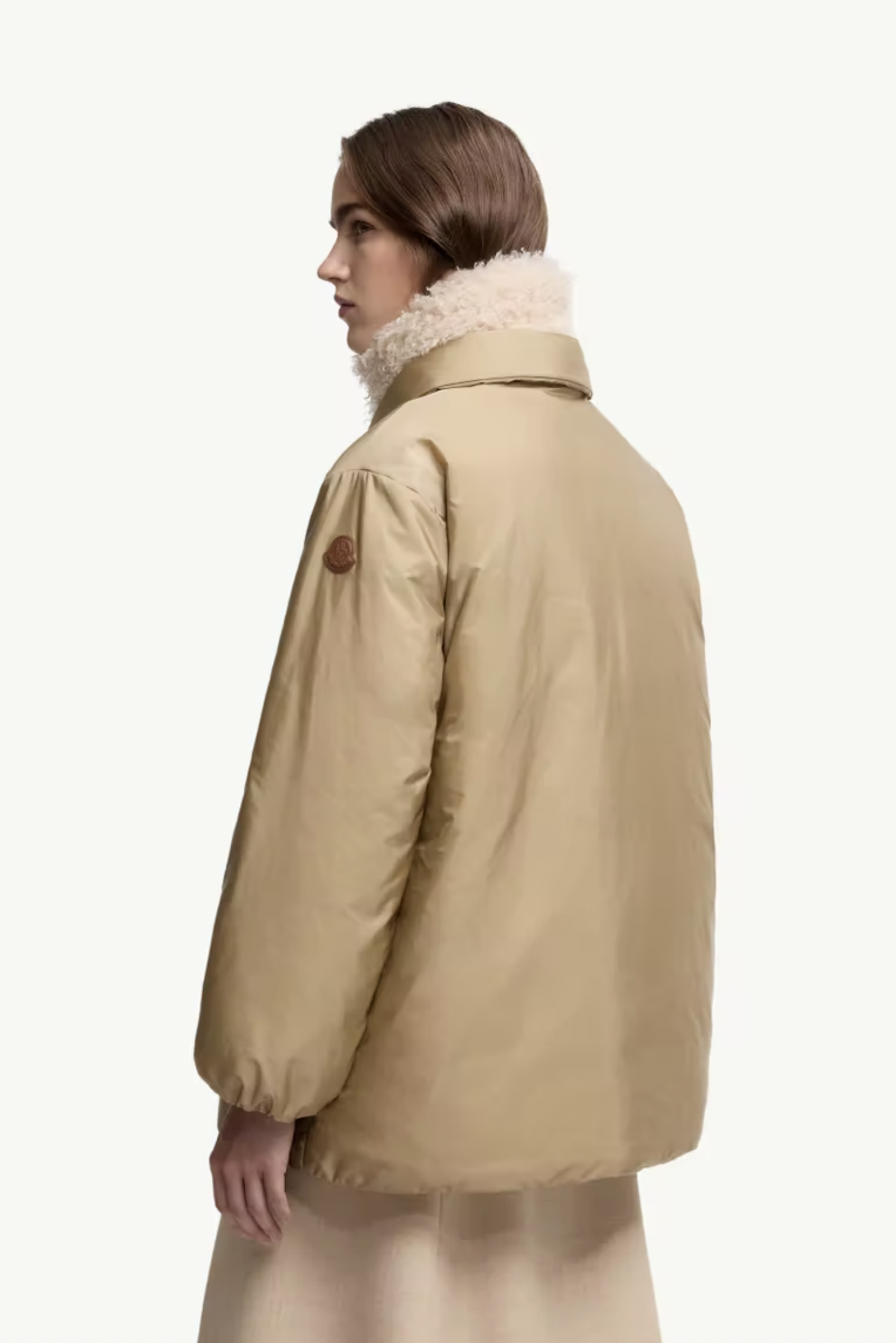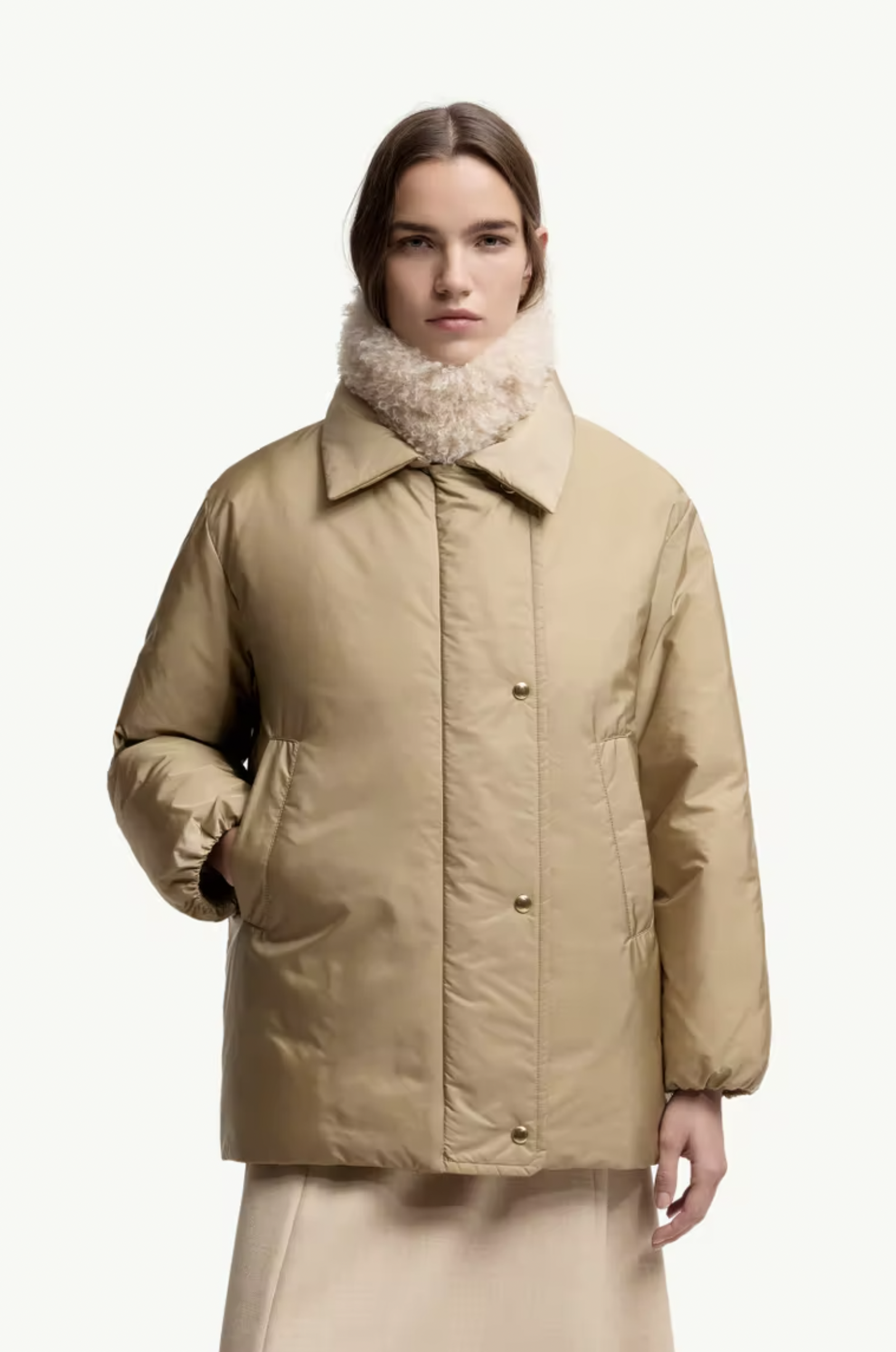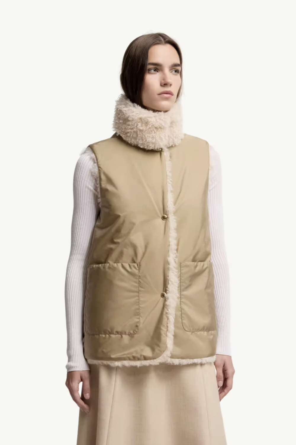 El plumífero corto Voue de Moncler, diseño 3 en 1, se ve realzado con un chaleco interior reversible y extraíble.