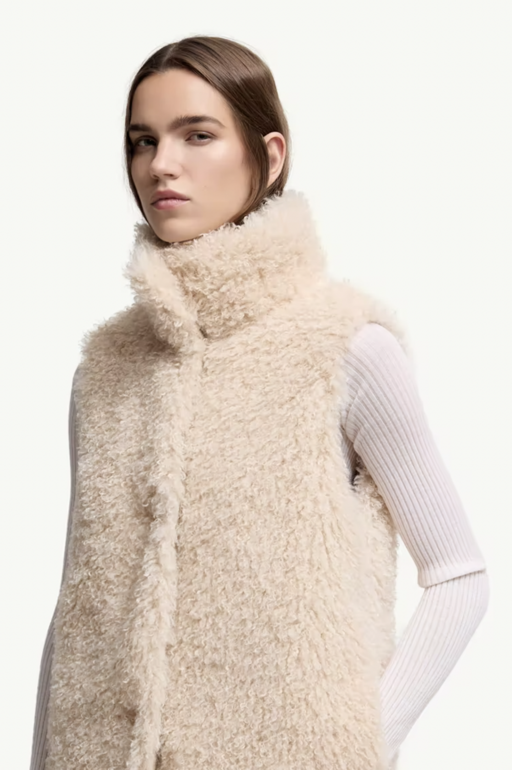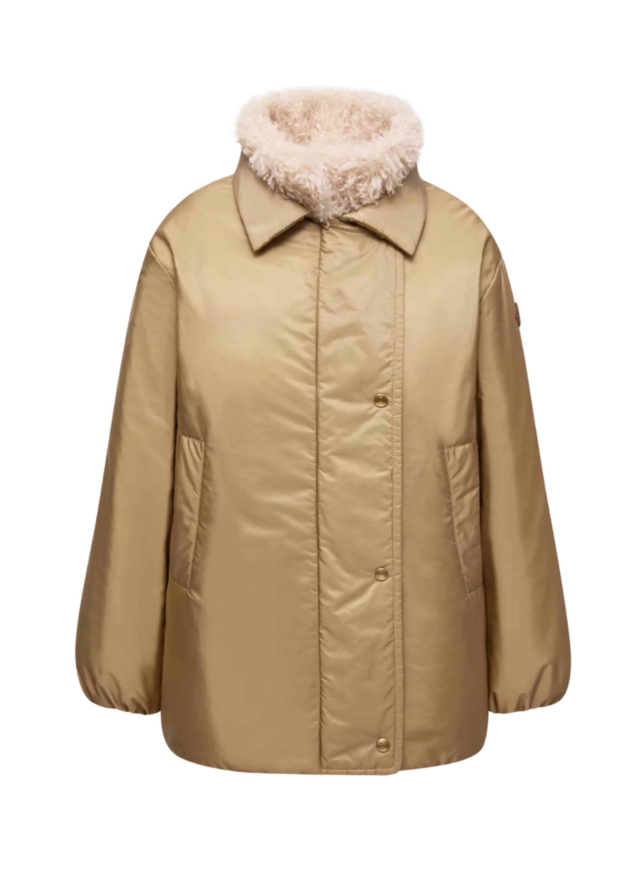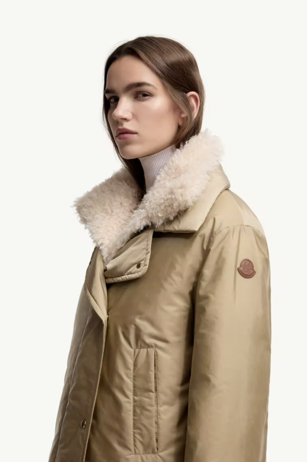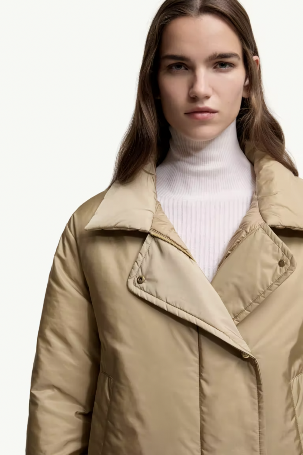 El plumífero corto Voue de Moncler, diseño 3 en 1, se ve realzado con un chaleco interior reversible y extraíble.
